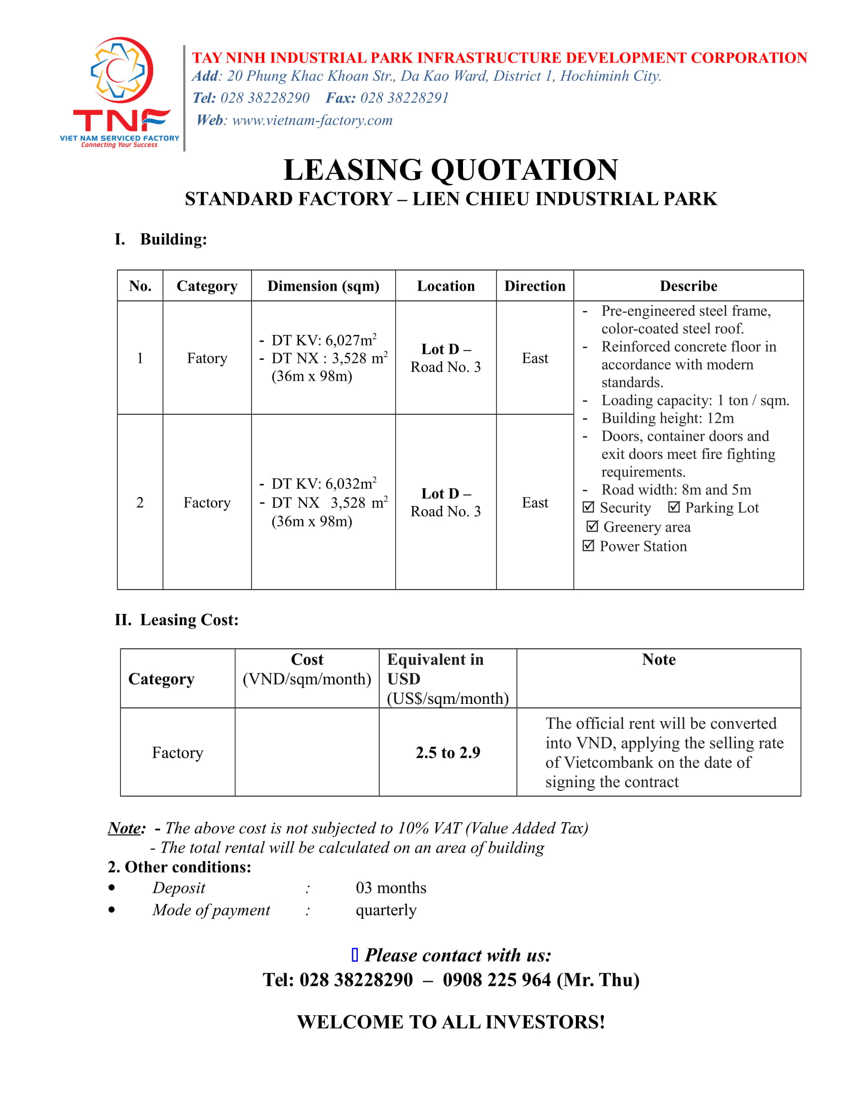Price of leasing factory